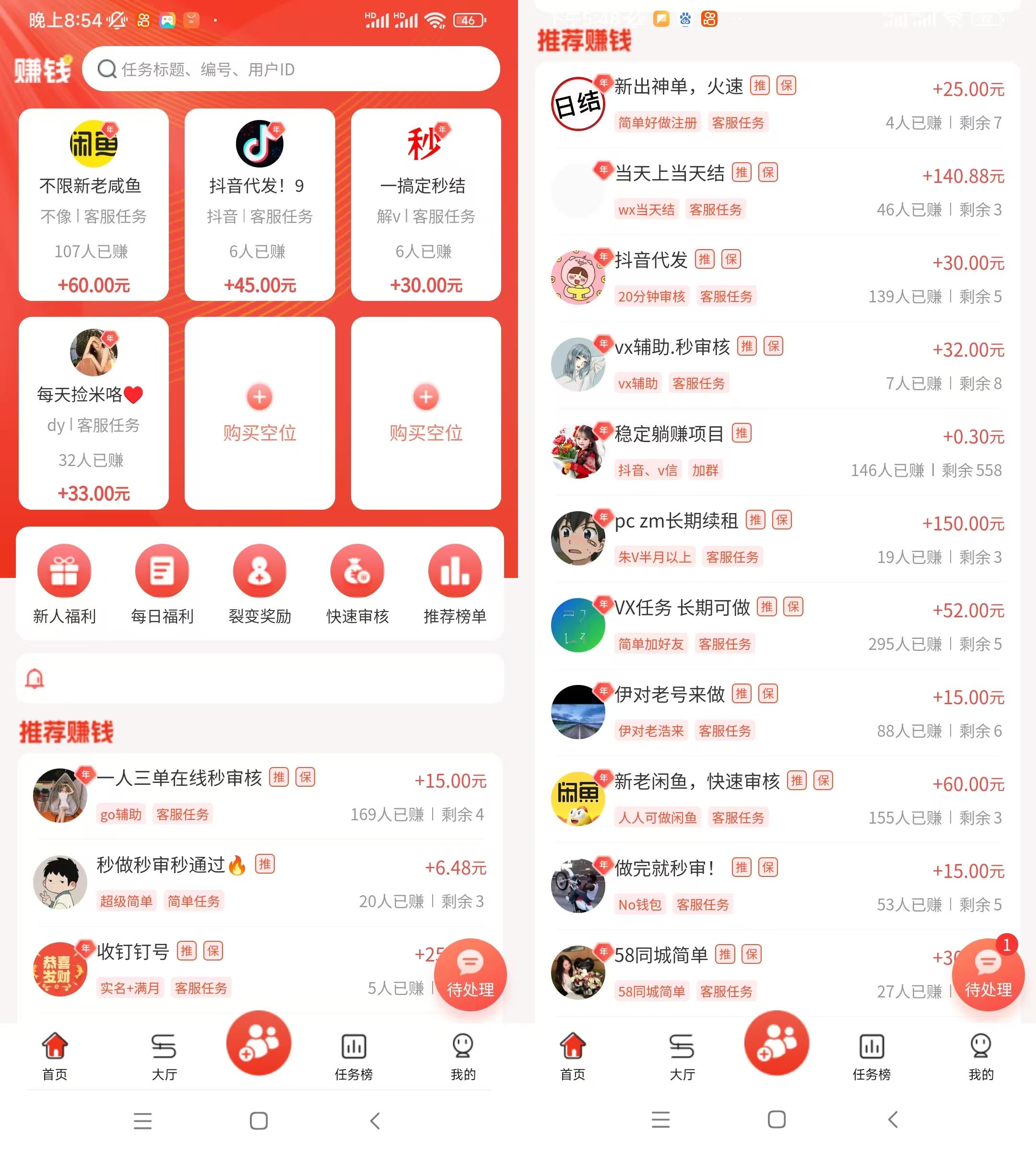 有豆音,咸鱼,筷手,威信等任务,单架几十到几佰不等,多号多做