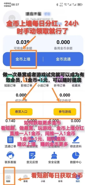 观看短剧赚积分:每观看3分钟的短剧,用户即可获得一定数量的积分。这些积分可以用于后续的上墙操作,帮助你提升仗户余额。